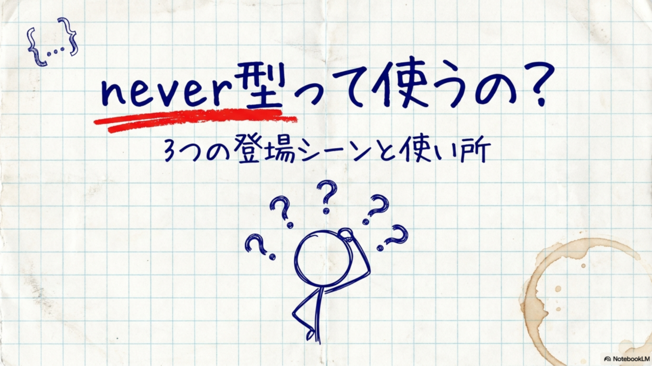この記事では、never型がどのように使われるか、具体的な例を交えて詳しく解説していきます。